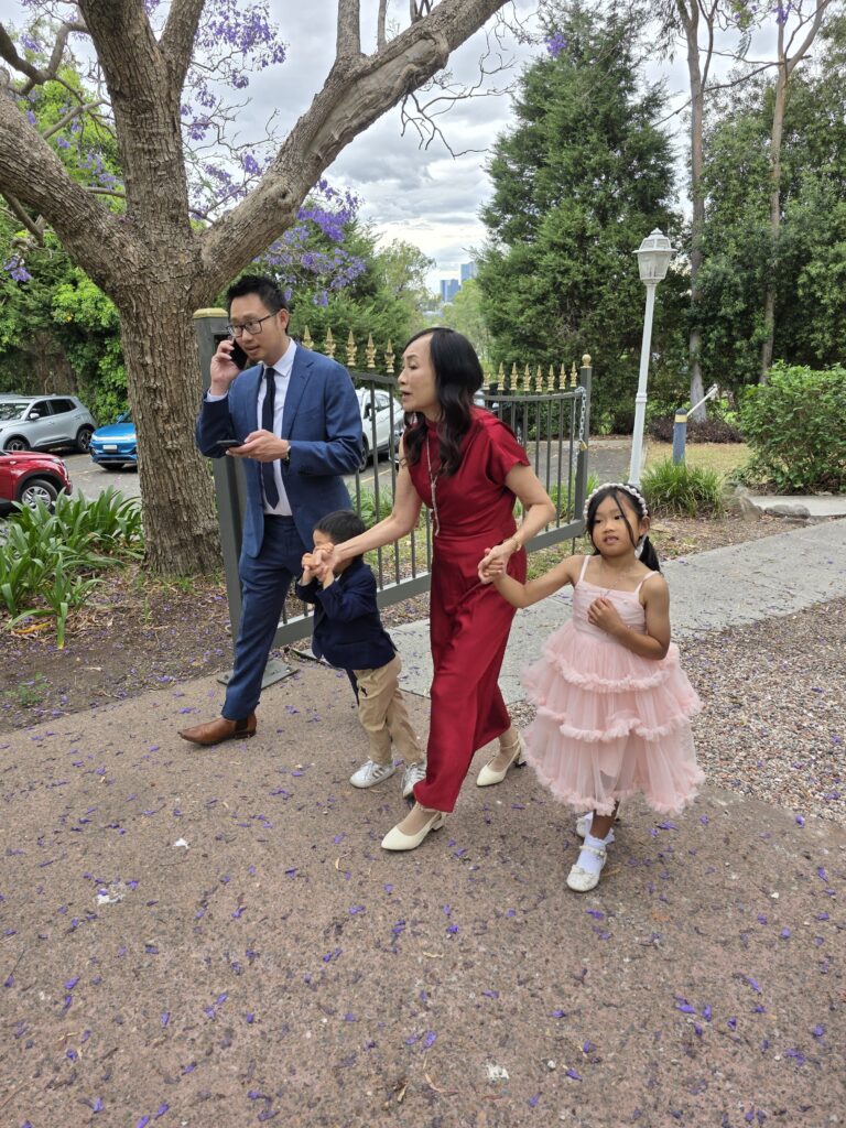 The Woon family landed at Sydney Airport in early morning (the day before the wedding)