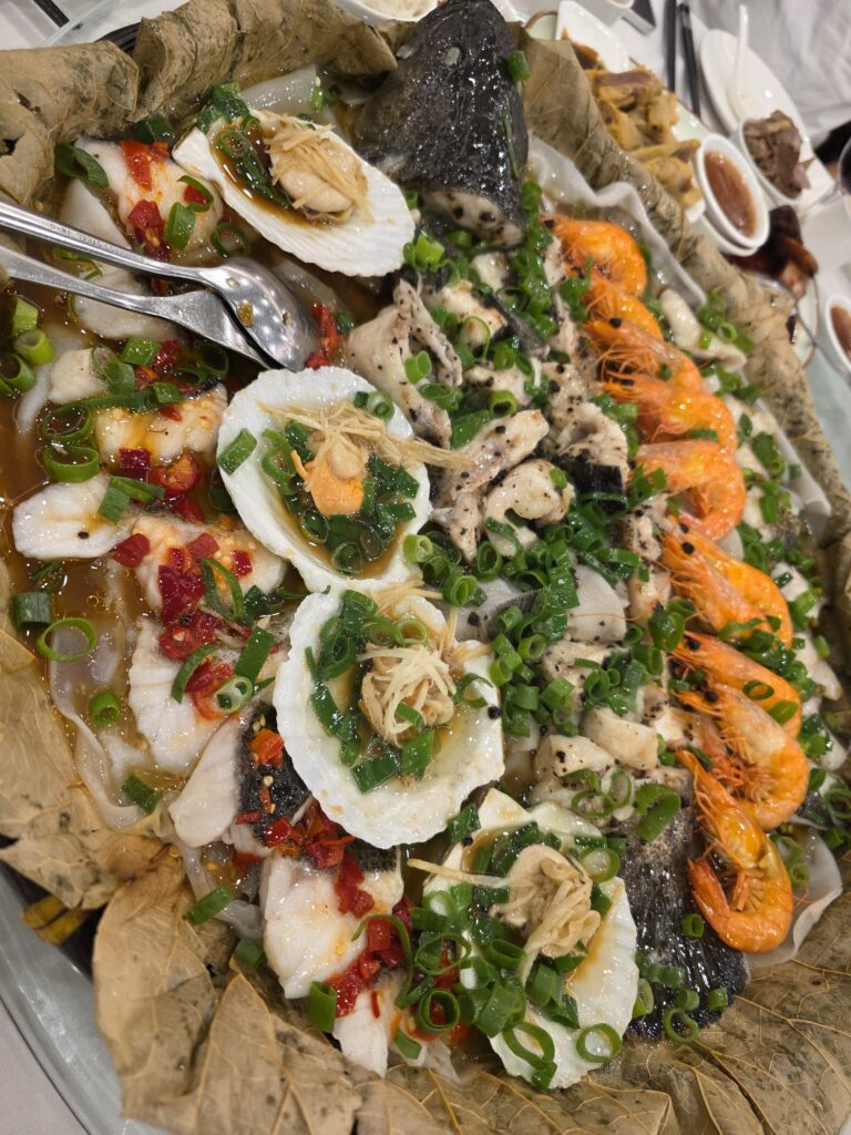 Traditional signature dish – a HUGE plate of seafood for 10 persons