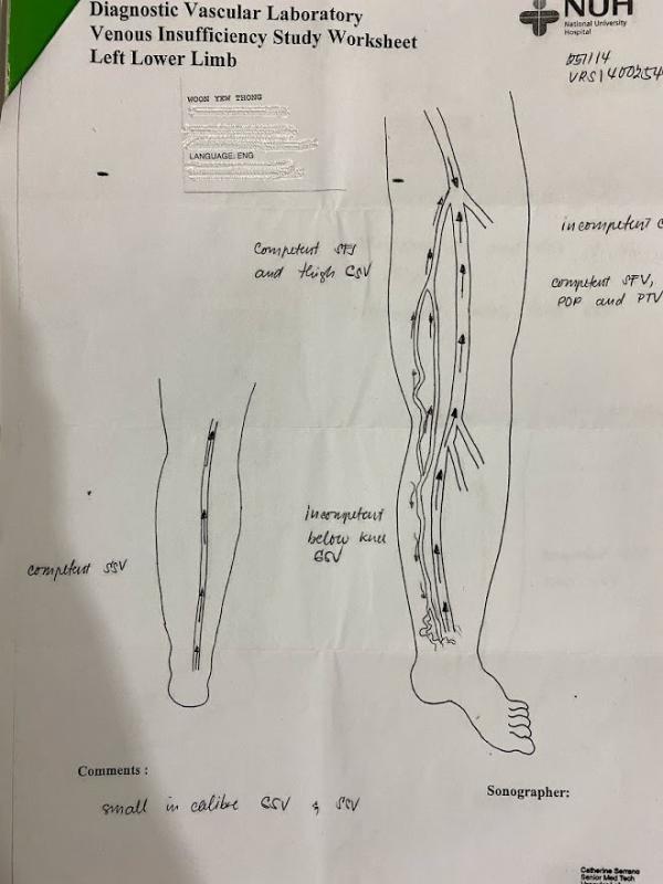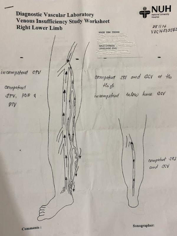 I went to the National University Hospital (NUS), where the doctor explained that the condition was likely caused by blood pooling around my ankle.